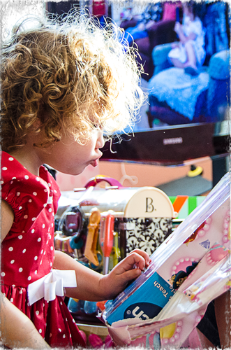 I had to document it as my 365 Self Portrait for the day. I’ll be leaving again in a week for almost a month in Hawaii . . . so I cherish each and every moment I get with her. I just love watching her at play . . . she is so intent on what she is doing. One second she’s immersed quite seriously on the task at hand, and the next moment she is reduced to a belly laugh and giggles that consume her whole body. Who can resist that?? Sure gets my day off to a great start!