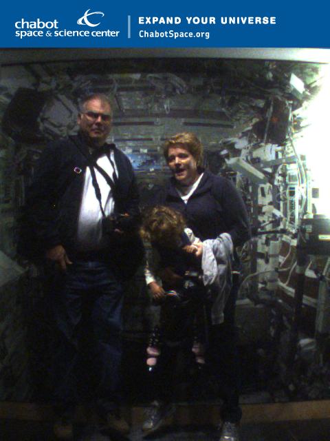 Today is Baby Girl’s second birthday. Papa G and I spent the day out and about with her just having fun. We went to the Chabot Space and Science Center in the Oakland Hills. It’s a great place to take kids . . . fairly new and lots of great activities. One exhibit was all about weightlessness in space. In this one, I pressed the button on a touch screen, then stepped on to this mat with Papa and Ella. A message said for us to JUMP! When we did – it snapped out picture. It’s supposed to look like we are weightless in space! It didn’t turn out that great – but it was a lot of fun. There was an option to e-mail it to yourself . . . so I did and thus it becomes my 365 for today!