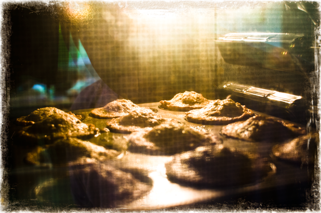 Mmmmmmmm . . . . baking this morning . . . using up all the zucchini goodness from the garden. I took this shot with my D7000 on a tripod with the oven light on. Can you see me? Gonna freeze me up a bunch of these bad boys to enjoy in the months to come. I did a triple batch of the Zucchini Bread recipe, but made muffins. I did a tray of mini muffin bites as well. Tomorrow I’ll post a picture of the Chocolate Zucchini Brownies that are in the works.