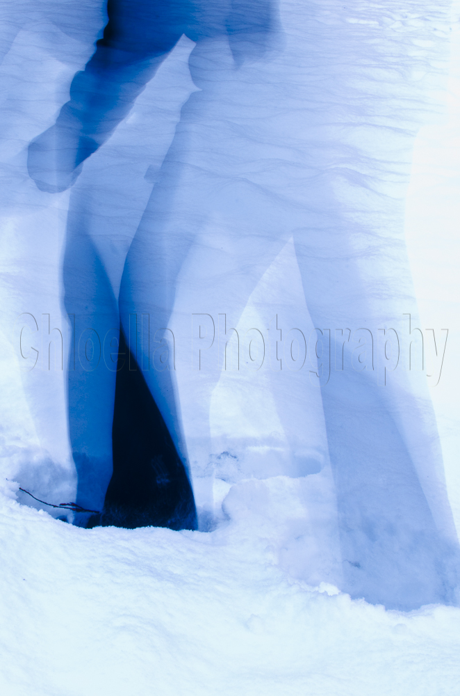 Today I challenged myself to try something other than just pointing the camera and shooting. There are some AMAZING self portraits being posted over on the Michael the Maven blog. Seriously! Huge inspiration . . . I’m really fascinated by images where people are “ghosting” themselves. So – I tried that today, out in the snow – freezing my tush off! It was fun though . . . and this is the result . . .