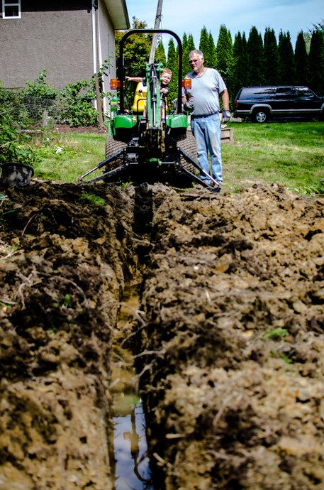 Reading this quote made me think about what a strong man I am married to/partnered with. He’s no victim! Yeah, I know – he’s digging that ditch with a back-hoe attachment on the John Deer tractor. But that’s the thing . . . he’s dug a few ditches in his lifetime so he knows the value of using the proper tools to get the job done. And now that he can afford the tools, why not use them?? I am continually amazed at his strength in all kinds of situations . . .not just ditch-digging. He fixes things, builds things, designs things, sells things, thinks big and lives large. I guess you can say I’m a huge fan of his! He keeps his cool in some pretty difficult business situations . . . when projects seem to be heading off the rails he manages to rally the troops and get things back on track. He doesn’t lose his head, he doesn’t lose his cool. He’s an amazing father who helps his boys when they need him, but at the same time enables them to make decisions and learn from their mistakes. He’s an absolutely giddy and silly Grandpa . . . completely in love with the little ones. He’s about the best son a mother could ever want . . . being there for his 93 year old mother no matter what. And most of all, he is my rock, my best friend, my confidant and life partner. Every day is not perfect . . . and guess what . . . his farts do stink . . . but I love him no matter what! We are traversing whatever ditches and mountains we encounter in life . . . hand in hand, side by side, together.
