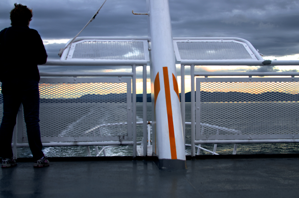 On the Ferry headed home from Vancouver Island. That’s Vancouver Island in the distance with a very pretty sunset. It’s been a stormy, cold and wet week so it was a treat to see the sun setting over the Island. I processed this in HDR using Photomatix and Photoshop CS6.
