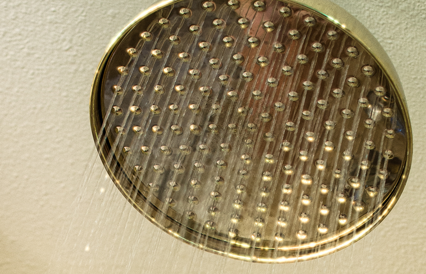 I spent the last few days trying to get the perfect “shower shot” with the water flowing off my hair. It’s incredibly difficult to get tack sharp focus when I’m doing this with the camera’s timer and trying to guess where focus should be. In this shot, I noticed as I was editing – the reflection in the shower head. So I cropped in, and this is today’s picture. Shutter speed was quite slow, so the water is more of a steady stream.